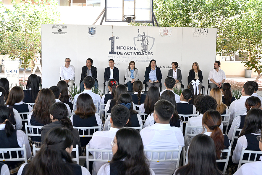 Yadira Espinoza Cerezo, directora de la Preparatoria Número Cuatro, de Jojutla, presentó el 15 de octubre su primer informe de actividades, en las instalaciones de esta unidad académica.