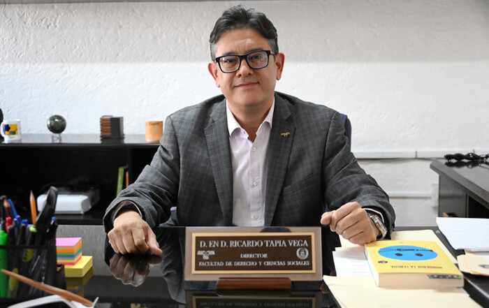 Fortalece la FDyCS la formación humanista y tecnológica Por Nailea Vega En el marco de la conmemoración del Día Internacional del Abogado, Ricardo Tapia Vega, encargado de despacho de la Facultad de Derecho