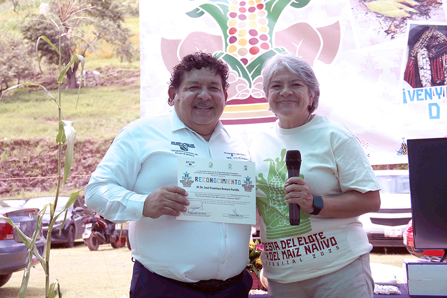 Israel López Cortés, responsable de la operación técnica del subsidio de la Reserva de la Biosfera Sierra de Huautla (Rebiosh), informó sobre la participación del CIByC en la organización de la Fiesta del Elote, que busca la conservación de los maíces nativos y el desarrollo económico local, como parte de una comunidad que se encuentra dentro de la Rebiosh.